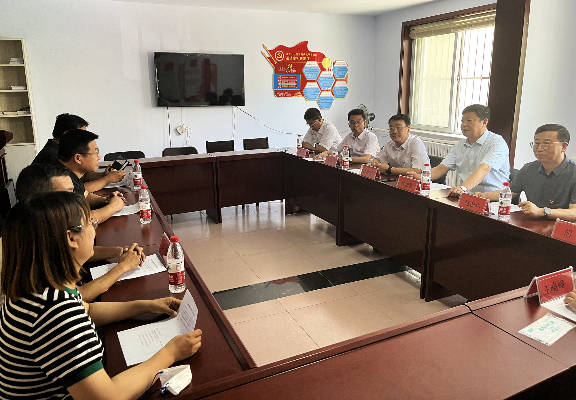 捐贈(zèng)儀式后,國控集團(tuán)領(lǐng)導(dǎo)班子與橋東街道、會(huì)龍山社區(qū)主要負(fù)責(zé)人,就結(jié)對(duì)幫建工作進(jìn)行座談,詳細(xì)了解了創(chuàng)城工作開展情況、存在問題及下一步打算,針對(duì)社區(qū)基礎(chǔ)設(shè)施不完善、公共停車泊位施劃不合理、樓道雜亂和小廣告亂貼等問題,研究制定了具體舉措。會(huì)上,為感謝國控集團(tuán)在抗擊疫情和結(jié)對(duì)幫建工作中的大力支持,橋東街道、會(huì)龍山社區(qū)向集團(tuán)公司贈(zèng)送了“下沉一線保民平安、抗擊疫情沖鋒在前”錦旗。