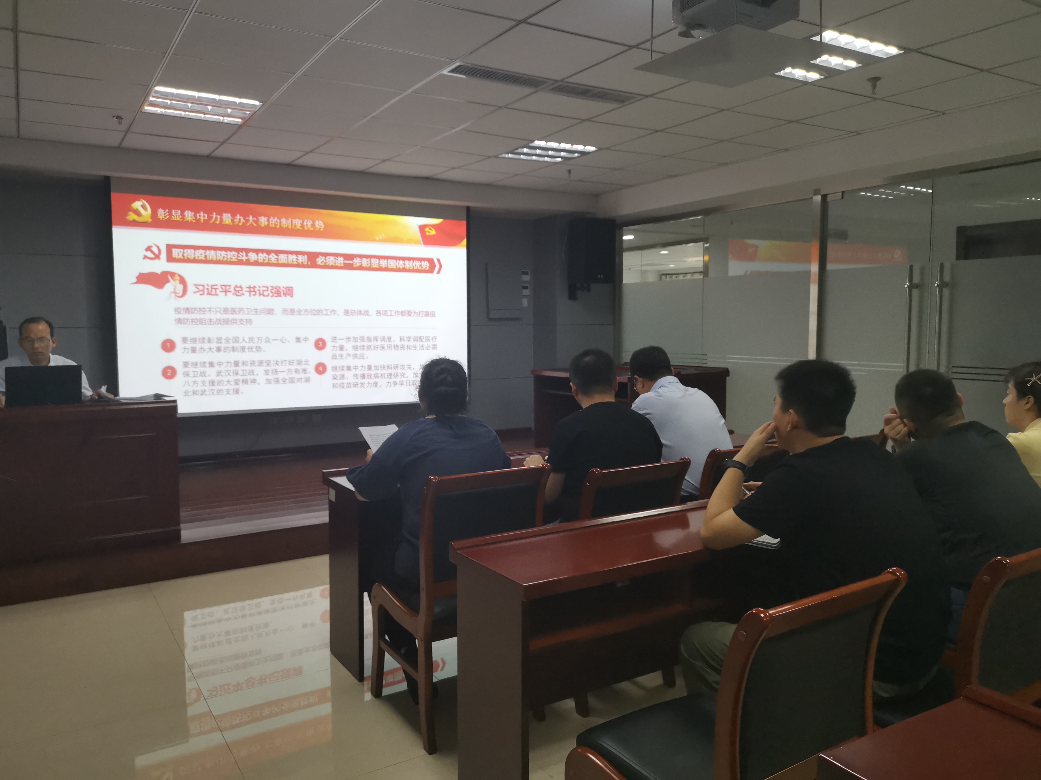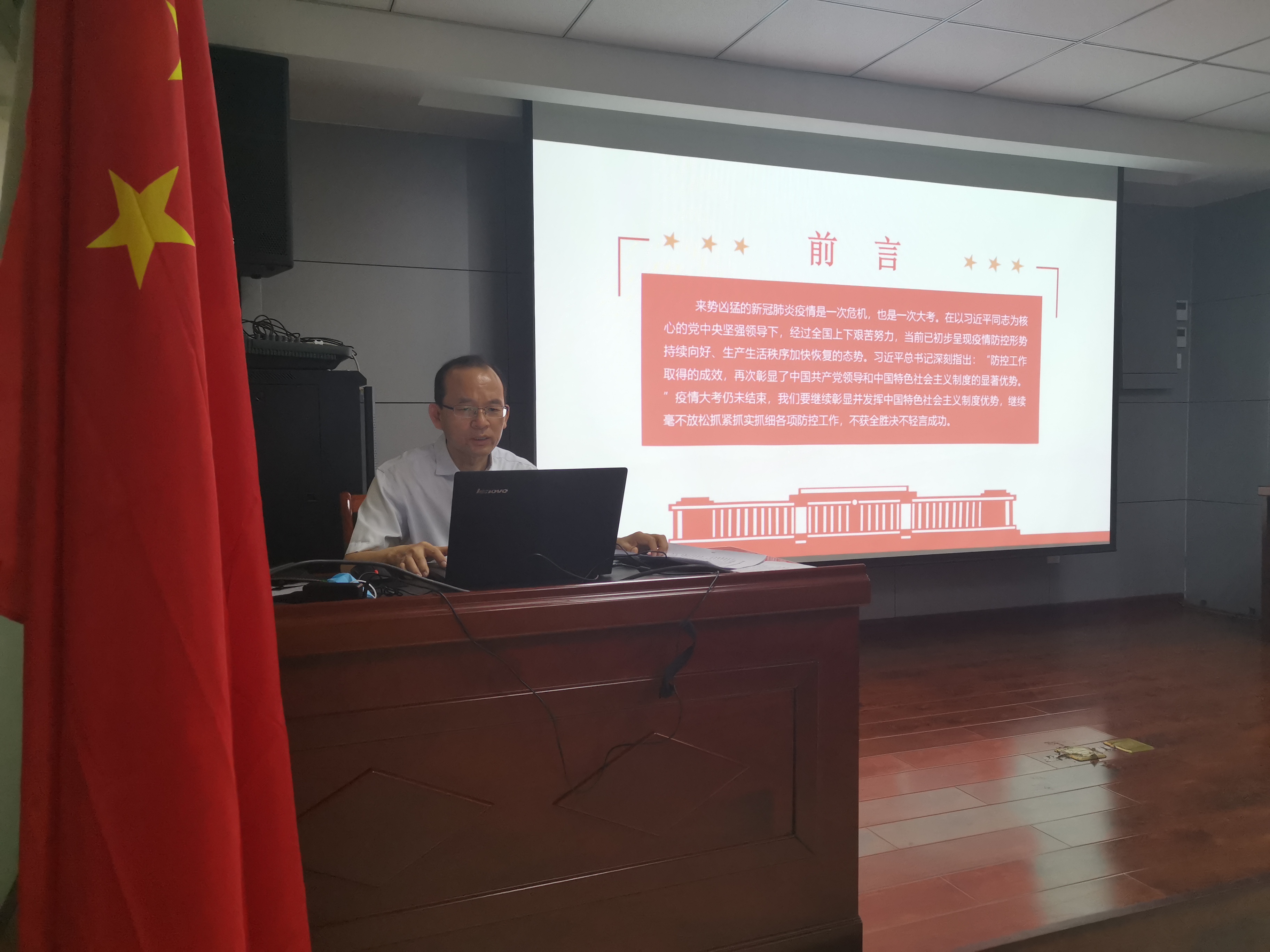2020年7月2日上午,中共承德市國控投資集團(tuán)有限責(zé)任公司第二支部委員會支部書記焦俊良同志以“在大考中彰顯中國特色社會主義制度優(yōu)勢”為題,為全體支部黨員和入黨積極分子上了一堂別開生面的黨課。